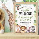 Celebrate the birth of your little one with this adorable jungle animal-themed baby shower design. Featuring a playful watercolor lion, elephant, and giraffe and the cheerful phrase "A LITTLE WILD ONE IS ON THE WAY," this design sets the perfect mood for a fun and unforgettable event. Ideal for welcoming a baby boy, this charming design is sure to delight and cheer your guests. For complementary products, check out the collection of this adorable baby shower design.