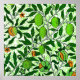 Imprimer dans un William Morris Art nouveau motif de citrons, grenades et pêches, avec des fleurs, sur des branches feuillues - fruit en vert citron et orange corail, avec feuilles verts, contre un arrière - plan à motifs, vert citron et blanc