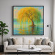 Oeuvre d'un saule entourée d'un plan d'eau, dans un style de peinture pastel. Un majestueux saule posé paisiblement au milieu d'une eau scintillante. Cette oeuvre capture un saule solitaire, ses feuilles lumineux embrassés par le soleil une émeute de jaunes et d'oranges, pleurant doucement dans l'eau applaudie en dessous. La surface de l'eau est vivante avec des touches de turquoise, saphir, et des reflets de la canopée dorée, créant un affichage fascinant de la lumière. Cette oeuvre est une célébration de la beauté naturelle et de la "magie" de la lumière sur l'eau, idéal pour ceux qui apprécient les détails peints et une palette de couleurs apaisante. Cette pièce peut être customisée, imprimée et téléchargée.