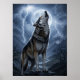 Poster Wolf Howling at Full Moon with Lightning Storm