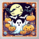 Fantastique Halloween éffrayant. Une grande Lune avec des fantômes, des citrouilles et des chauves-souris amis.