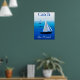 Poster de l'art des yachts en mer, avec la phrase "attraper le vent", sur un arrière - plan cobalt et bleu azur océan