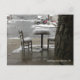 Café-Shop - Tisch und Stuhl mit Schneekappen bedeckt.