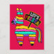 Die sonnige Postkarte für mexikanische Themenabende. Es hat eine bunte Esel piñata Design und Let's Fiesta Banner.