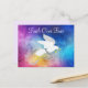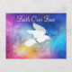 Schicken Sie eine Sonderaktion mit dieser Christlichen Postkarte. Es hat eine weiße Taube, die zwischen den Sternen und farbenfrohen Wolken fliegt, einen Olivenzweig mit blühenden Silberribbons und den Inspirierend Worten.."Glaube über Angst!".