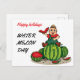 Der zeichn des Autors wird auf einem Tablett gemacht, ein fröhliches Kind sitzt auf einer großen Wassermelone und isst