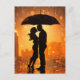 Liebe-Schatten steht im Regen auf einem goldenen Hintergrund mit einem Regenschirm