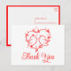 Diese charmante Postkarte mit Liebesvögeln ist eine entzückende Möglichkeit, Ihre Dankbarkeit auszudrücken. Die zarte rote Herzillustration zusammen mit der einfachen Farbpalette in Rot und Weiß schafft ein weiches und romantisches Erscheinungsbild, das perfekt für sommerliche Hochzeiten im Freien oder Frühlingsfeiern im Garten ist. Ideal für Naturliebhaber kombiniert dieses Design Boho-Elemente mit niedlicher Vogelkunst. Es ist eine liebevolle Möglichkeit, Ihren Dank mit einer extra Portion Liebe zu übermitteln. Diese Karte kann auch für verschiedene Anlässe personalisiert werden.