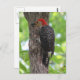 Im Postkartendesign befindet sich ein männlicher, rot-geliebter Woodpecker, der nach Insekten sucht.