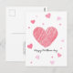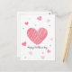 Diese Postkarte zeichnet sich durch ein minimalistisches und dennoch liebenswertes Design aus, das sich perfekt eignet, um am Muttertag herzliche Gefühle zu vermitteln. Das Layout dominiert ein großes, von Hand gezeichnet Herz in einem Skriptstil, dessen unvollkommene Linien auf die authentische, handgefertigte Anstrengung hinter einer persönlichen Botschaft hinweisen. Der üppige Rosaton des Herzens hebt sich vor dem knalligen, weißen Hintergrund ab und symbolisiert Liebe und Zuneigung. Im Herzen des Zentrums liegen kleine Herzen in verschiedenen Rosa-Tönen, die ein Muster schaffen, das eine Fülle von Liebe und Zärtlichkeit impliziert. Die Phrase "Muttertag des Glücks" ist ganz unten ordentlich geschrieben, ihre schlichte Eleganz, die den spielerischen Charakter der Herzerkrankung ausgleicht. Das Design dieser Postkarte mit ihren klaren Linien und der sanften Farbpalette ist ein modernes, klassisches Motiv, das eine einfache und doch tief greifende Botschaft der Liebe zum Muttertag ausdrückt.