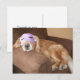 Kennen Sie jemanden, der neu in Rente geht? Schicken Sie ihnen große GLÜCKWUNSCH! Diese Postkarte zeigt ein Foto eines niedlichen Golden Retriever Hundes, der auf einem braunen Stuhl schläft und eine lila Schlafmaske mit schwarzen Wimpern trägt. Im Text auf der Rückseite steht: "Glückwünsche für deinen Ruhestand!" Text ist vollständig anpassbar. Ändern Sie die Wörter, den Stil, die Größe des Schriftartes - oder entfernen Sie sie vollständig für eine leere Karte. Sie können sogar die vertikale Linie entfernen, wenn gewünscht.