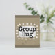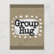 "Group Hug" ist ein niedliches Textdesign in Beige mit schwarzem Text, mit weißer Akzent-Form und weißen, texturierten, weißgetönten weißen Punkten, die ihn umgeben.