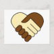 Ein schwarzer Mann und ein weißer Mann schütteln die Hände. Symbol oder Logo in Herzform auf der Postkarte