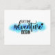 "Lass den Erlebnisbeginn" inspirierende Anführungskarte. Ein einfaches aber effektives typografisches Design, schwarzer Text mit schwarzem Herz auf blauem, texturiertem Hintergrund. Diese Karte ergänzt Ihre Zuhause- oder Bürodekoration oder ist eine ideale Postkarte, um sie an einen Freund oder Liebsten zu senden.