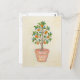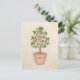 Mandarinen wachsen in einem Terrakottakessel, auf dieser Postkarte.