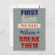 "Lernen Sie zuerst die Regeln, dann brechen Sie sie". Sehen Sie in meinem Laden für weitere Artikel mit diesem Design.