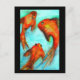 mit originellem Design aus Aquarellmalerei von Sacha Grossel aus drei orangen orientalischen Goldfischen oder Koi schwimmen in einem ruhigen aquafarbenen Wasser. Dieses friedliche Design, das von japanischer und asiatischer Kunst für viel Glück Feng Shui Water Chi inspiriert wurde, wird durch sein helles und lebendiges Design einen bleibenden Eindruck verlassen.