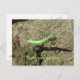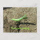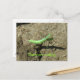 Hellgrüne Gottesanbeterin sonnt sich auf einem Felsen. Sein langer schwarzer Schatten gibt dem Bild Tiefe. Erleben Sie Ihren Sommerurlaub mit Freunden und Familie per Postkarte.