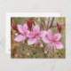 Rosa Blume mit bordeauxfarbenen Stielen und Blätter. Braune und grüne Blätter bilden den Hintergrund. Pink Guara. Onagraceae Gaura lindheimeri.