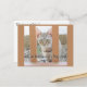 Gestreiftes Kätzchen, das sich zwischen braunen Rängen aus dem Zaun der Veranda schwebt. Text ganz unten im Bild lautet "Soziale Distanzierung - Sicher Bleibe" Auf der Kartenrückseite liest Text oben "Denken Sie an Sie" Beide Textzeilen können personalisiert sein.