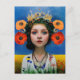 Schöne Postkarte mit einem Originalportrait eines ukrainischen Mädchens. Stehend mit der Ukraine