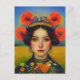 Schöne Postkarte mit einem Originalportrait eines ukrainischen Mädchens. Stehend mit der Ukraine
