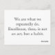 Motivieren, inspirier und ermutigen Sie mit dieser wunderbaren Postkarte. "Wir sind das, was wir wiederholt tun. Exzellenz ist also kein Akt, sondern eine Gewohnheit" - Aristoteles