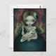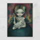 Eine sehr stimmungsvolle Szene eines melancholischen Mädchens, das einen schönen Schädel von dem hält, was ein Einhorn zu sein scheint. Im Hintergrund kann man das berühmte mittelalterliche Einhornband sehen, das an der Wand hängt (jetzt im Moyen Museum (Musee de Cluny) in Paris. Dieses Stück debütierte 2012 auf der Dragon*Con Art Show und das Originalgemälde hatte einen eigenen Rahmen von Jasmins Ehemann Matt - ein sehr einzigartiger Schildrahmen in dunklem Patina-Finish mit einem Jasminengesicht, das in die Verzierung oben eingemeißelt wurde. Mein eigenes Original-Acrylgemälde.