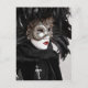 Direkt aus dem Karneval von Venedig eine wunderschöne und geheimnisvolle Dame, die eine wunderschöne schwarze Tracht und goldene Maske trägt.