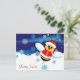 Postkarte von Weihnachten mit einer Biene mit Anzug von Weihnachtsmann