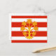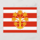 Postkarte mit Design mit einer Fahne des historischen Landkreises Westmorland, England, Großbritannien; weiße und rot gestreifte Fahne mit goldenem heraldischem Apfelbaum in der Mitte