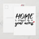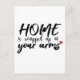 "Zuhause ist in Ihre Arme eingewickelt" Anführungskarte. Ein einfaches aber effektives typografisches Design, schwarzer Text auf weißem Hintergrund mit rotem Herz. Fügen Sie dem Hintergrund eine Farbe hinzu, wenn Sie dies wünschen oder gehen Sie mit schwarz auf weiß wie gezeigt. Diese Karte ergänzt Ihre Zuhause- oder Bürodekoration oder ist eine ideale Postkarte, um sie an einen Freund oder Liebsten zu senden.