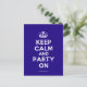 Basierend auf dem ursprünglichen Behalt Calm und ... poster dieser Creme und blau Behalten Calm und Party On Postcard verfügt über einen speziell entworfenen Schriftart, das dem Original genau entspricht.