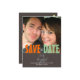Schlichte und sehr gewagte Save the Date Postkarten in dunkelbraun mit orangefarbenen und grünen Akzenten. Einfach anzupassen. Copyright © 2010, PixDezines.com und PixDezines auf Zazzle.