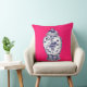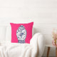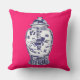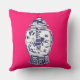 Accentuez votre maison avec ce coussin coloré comportant une illustration originale par l'artiste Anne Harwell McElhaney d'un pot bleu et blanc chinois classique de porcelaine de gingembre sur un arrière - plan magnifique de fuschia. La conception est décrite sur l'avant et le dos du coussin.