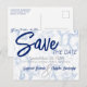 Envoyez le faire-part "Enregistrer la date" pour votre mariage avec un design bleu fumée. Personnalisez le texte avant et arrière dans les champs modèle, supprimez du texte ou modifiez-le à l'aide de l'outil de conception pour sélectionner un style, une taille et une couleur de type que vous préférez.