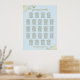 Ce beau tableau de 23 places mariage présente un design simple mais élégant avec du texte en or sur un arrière - plan bleu clair couleur poudreuse et des filigree doré en dentelle dans les coins. Le titre de calligraphie du script dit : Veuillez trouver votre table. Contient des tables de 230 convives à 10 convives par table.