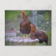 Cette carte postale présente une image humoristique de 2 poules perchées sur un bain d'oiseaux.