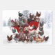 POULET AVEC SANTA HATS DORMIR DANS LA NEIGE FEUILLE PLAT PAPIER ENSEMBLE DE 3