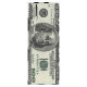Sac cadeau avec l'image d'une facture de 100 dollars.