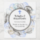 Une collection de coquillages dessinés à la main entoure un simple cadre double sur ce Étiquette de bouteilles à vin. Une croix bleue accentue le sommet. Commander ou magasin soeur www.pixieprints.com pour tous vos besoins d'invitation!