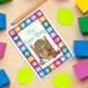 Envoyez votre cadeau Douche ou Bébé avec cette mignonne carte personnalisable avec une numériquement couture originale scannée d'une girafe, peluche et lapin assis au pied du lit d'enfant pour accueillir le petit.