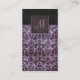Carte de visite pourpre et noir élégant à la mode de motif de damassé grand pour tout vieux routier/présenter le dessinateur d'intérieurs professionnel et, le vrai agent immobilier/agent immobilier, le spa, le salon de cheveux/ongle, le cosmetologist, etc.