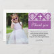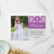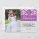 Ce carte de remerciements pourpre de photo de baptême de damassé est une manière parfaite de remercier vos invités. Vous pouvez personnaliser le carte de remerciements avec une image de vos propres et ajoutant vos détails personnels. Ayez l'amusement ! ! Photo par la photographie de cerise.