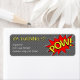 Versenden Sie phantastische Superheld-Party-lädt mit passenden Superhelden-themed-Rücksendeadressen-Aufklebern! Dieses Design enthält ein Superheld-Comic "POW!" Klangeffektblase mit dem bekannten Aussehen einer roten Spiky-Blase mit schwarz gepunkteten Schatten. "POW!" ist in einer zweifarbigen gelben Füllung mit einem kleinen schwarzen Schatten, um das Wort Pop zu machen.