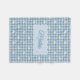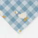 The gift they'll keep long after the baby has grown out of everything else. This powder blue gingham baby blanket features bow-tied geese waddling across a classic buffalo check linen texture, centered around a soft scalloped cloud frame personalized with your baby's name in a sweet script. Wrap him in it at the hospital, drape it over the crib rail, or tuck it away as a keepsake — it's the kind of gift that means something. The soft blue and white palette coordinates beautifully with the full matching nursery suite of wallpaper, pillows, and rug for a cohesive space from day one.