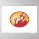 Illustration eines elektrikalen Power-Linienarbeiters, der einen Blitzschlag im Retrostil-Set in Ellipse hält.