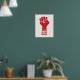 Dieses Kunstwerk zeigt eine rote Faust erhöht und die Worte Power zu den Menschen.