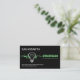 Ein ganz schwarzer Cover ist mit einem leuchtend grünen elektrischen Blitz versehen, der eine Glühbirne Power. In der Glühbirne ist die erste Slogan-Beschriftung "Call Me", die Sie ändern können, um Anzug Ihre Service-Anforderungen. Der Blitz trifft auf Ihren Job Titel "Elektriker" und die zweite Slogan-Beschriftung. Ändern Sie die Beschriftungen zu diesen beiden Artikeln, um Ihre eigenen Bedürfnisse Anzug. Oben befindet sich Ihr angesehener Name mit den Kontaktdaten am anderen Ende, am Fuß der Karte.