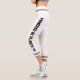 Diese schlichten weißen Leggings sind mit den Worten "Powered by Pflanze" versehen, die mit kleinen stilisierten Blätter und schwarzen Streifen auf beiden Beinen verziert sind.